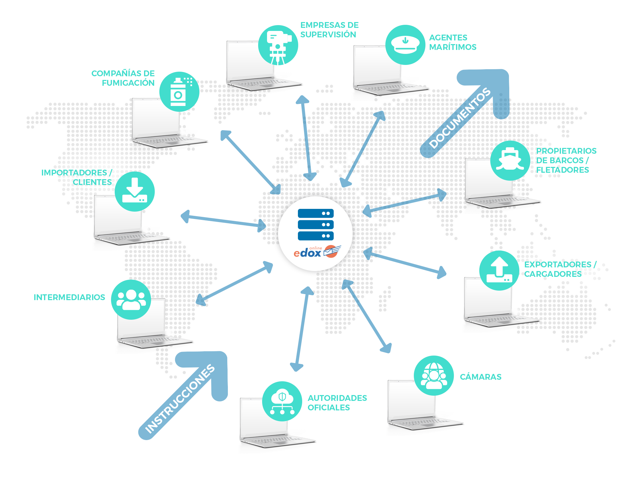Permite a cada participante de la transacción, tales como despachantes de aduana, surveyors, empresas de fumigación, corresponsales, agentes marÃtimos, entidades oficiales, etc, ingresar directamente al sistema los datos que le corresponden, evitando repetición de tarea y el reingreso de la información. De esta forma, la información se introduce solo una vez y los documentos se generan con la misma precisión con la que fueron ingresados los datos.